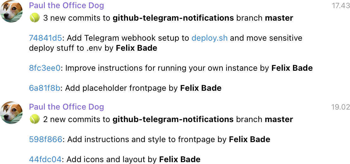 Get notifications from your GitHub repository or organization to a Telegram group.